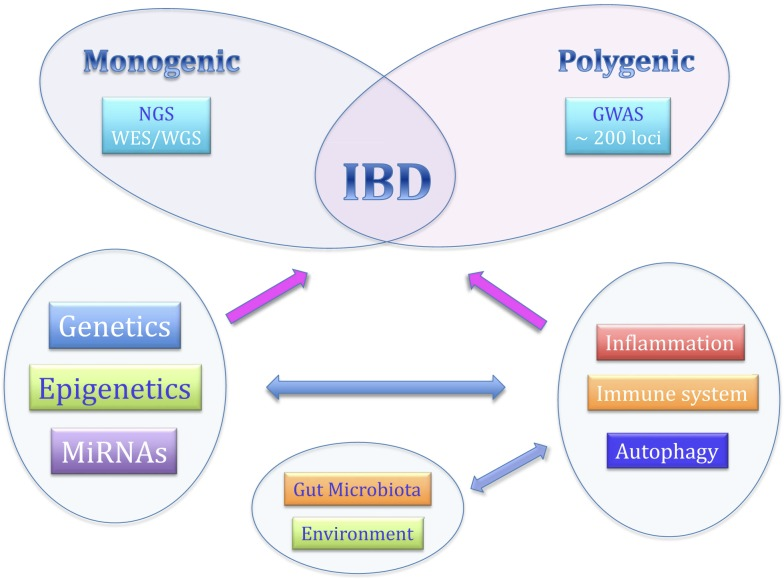 IBD is Chronic inflammation influenced by genetics, environment, microbiota, and immunity.